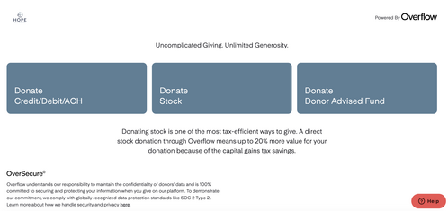 It depends! Overflow can process all whole shares of publicly traded stock, including from retirement accounts (401K, 403b, Roth IRA, and Traditional IRA). However, donors will incur a tax penalty if they remove retirement funds early (before age 59.5) and some employer-sponsored retirement plans will not allow early fund distribution at all. Because of these restrictions and potential penalties, we highly recommend consulting your tax professional before donating these types of assets. If you decide to proceed, Overflow’s concierge services will work with you directly to facilitate the transfer of these assets.